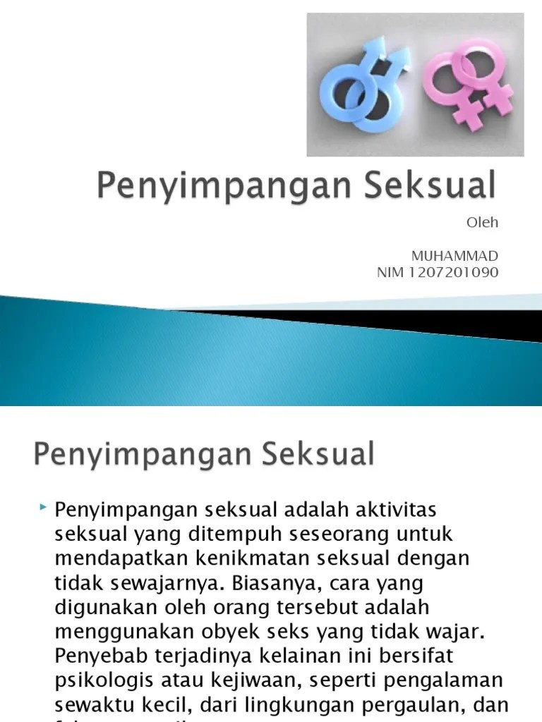 Hiperseksual tergolong dalam kelainan seksual yang membuat seseorang sulit mengendalikan hasrat berhubungan seks. • melakukan terapi hormon untuk mencegah dorongan seksual yang . Hubungan seks/perkawinan sedarah atau insesmerupakan salah satu bentuk penyimpangan seksual yang sering terjadi dalam kehidupan keluarga. Beberapa metodenya adalah metode preventif yang bertujuan untuk mencegah agar perilaku penyimpangan seksual tidak terjadi yang dilakukan dengan cara memberikan . Penyebab terjadinya kelainan ini bersifat.